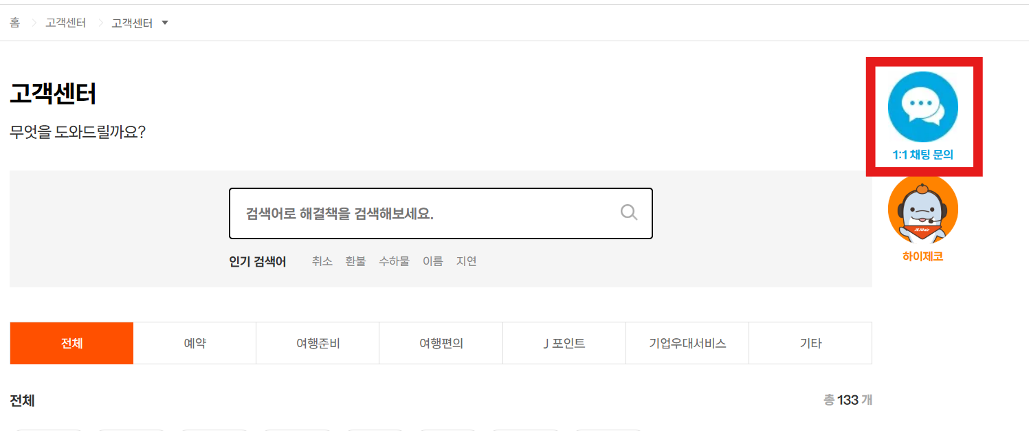 제주항공 홈페이지 고객센터에 들어가 보니,